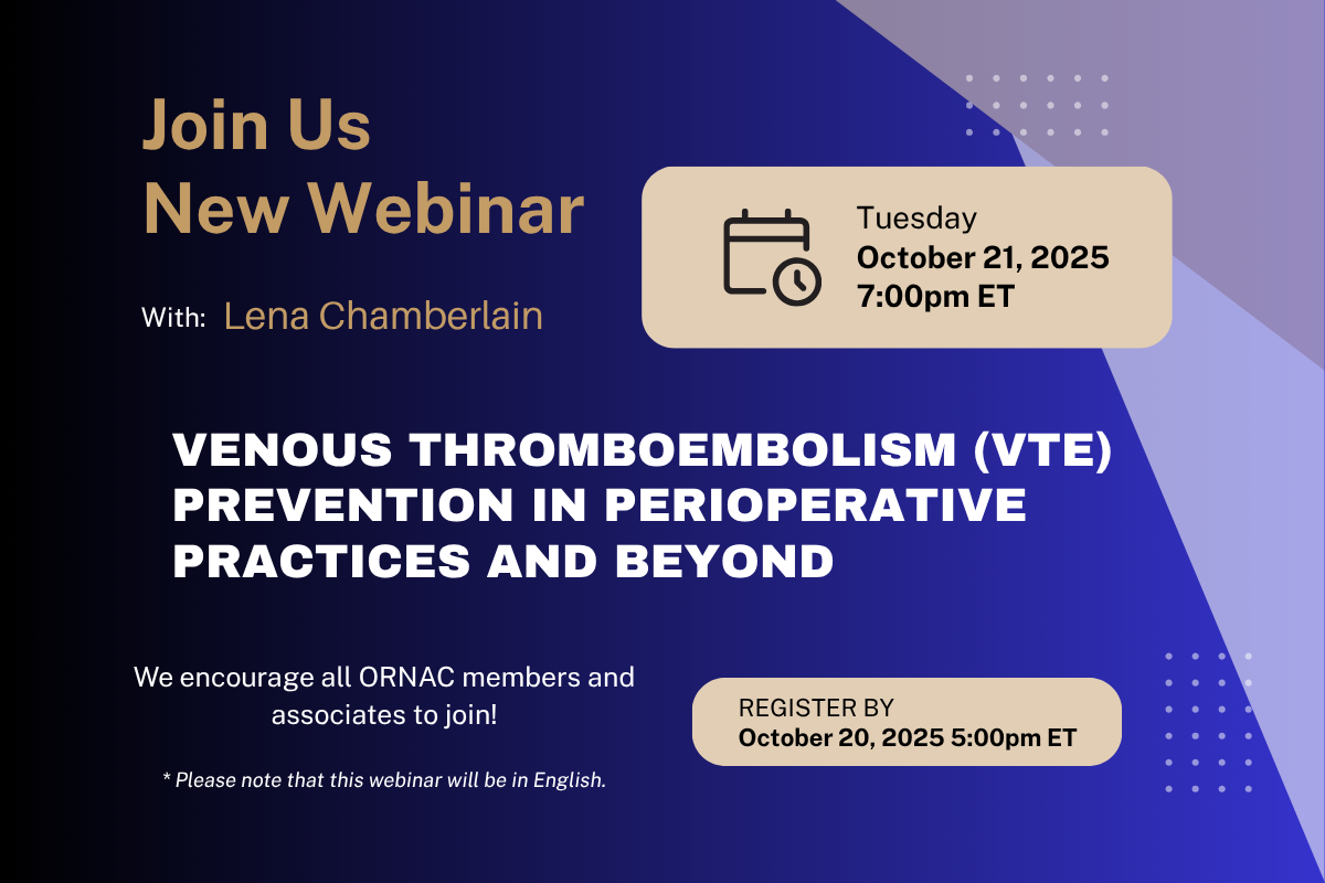 The Operating Room Nurses Association of Canada (ORNAC) is a national, not-for-profit organization dedicated to the specialty of perioperative nursing. ORNAC aims to enhance the quality of perioperative care, support the professional growth of our members, and elevate the profile of perioperative nursing as a vital specialty within the health care system.